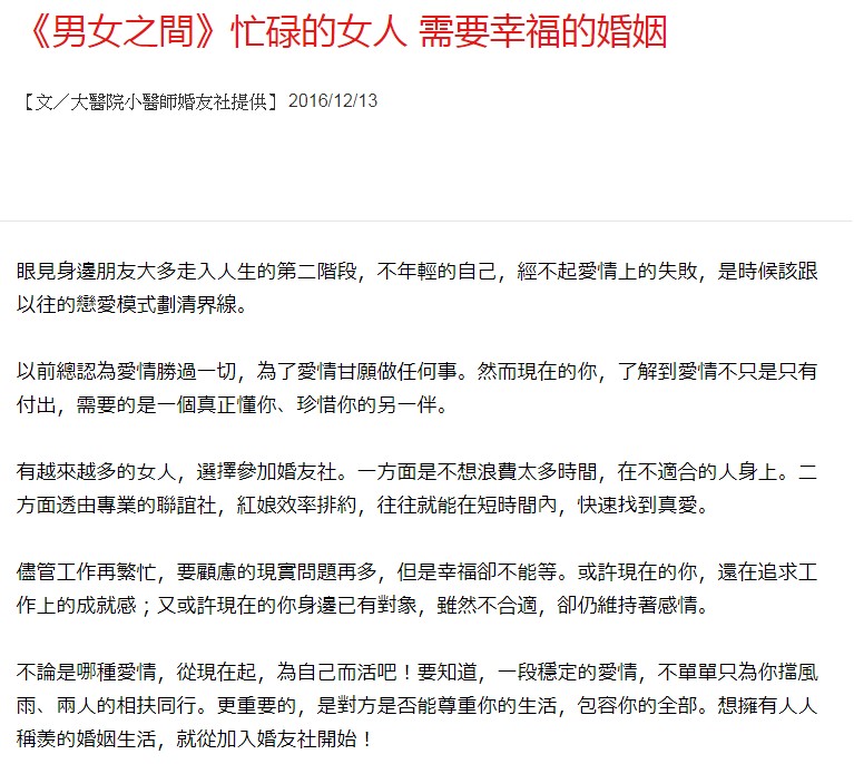 媒體花絮 - 男女之間—忙碌的女人 需要幸福的婚姻